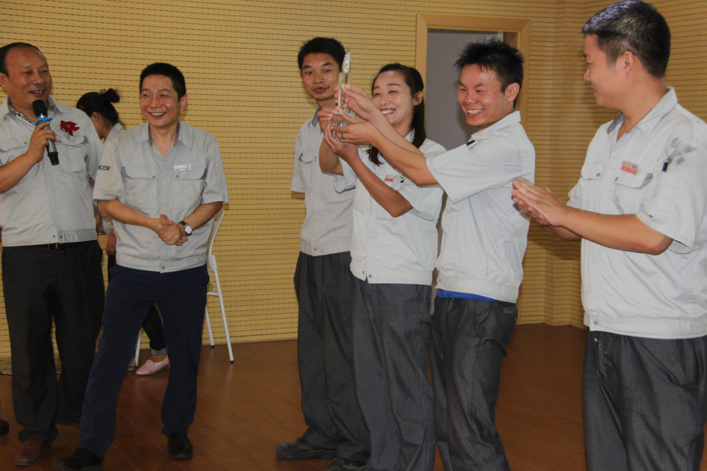 慶典的文藝節目也十分精彩,各班組盡顯神通,各班組都帶來了精心準備的節目,歌曲、相聲、小品、脫口秀。一個比一個精彩,表演者的一顰一笑都獲得觀眾的熱烈掌聲,臺上臺下齊互動,現場氣氛一次次地推向了高潮。